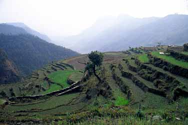 We have intentionally stopped overnight in Pothana (1900m, *1915 m) to enjoy its famous view but this first encounter with the Himalayas (especially Machhapuchre) on this trek turned out to be hazy and somehow disappointed. |