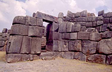 Sacsayhuaman, a name which means "satisfied falcon," is at the head of what the Incas thought of as the puma-shaped city of Cuzco. This mountaintop site overlooking Cuzco was once a fortress and was hosted one of the fiercest battles between the Incas and their Spanish Conquistadors. Some impressive rocks weight as much as 300 tons. |