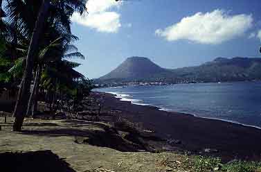 The town had a very beautiful location at the foot of several volcanoes. The most famous of them was Gunung Meja with an almost perfectly conical shape and a flat summit. Another volcano, Gunung Ipi, a little bit further south, was still considered active. Waiting for another bus, I could admire a beautiful view of tropical beaches with black, volcanic sand and coconut palm trees bowing to the sea. |